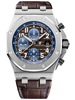Audemars Piguet Royal Oak Offshore Selfwinding Chronograph Watch 42 mm stainless steel case, 14.5 mm thick, sapphire crystal back, black ceramic pushpieces and screw-locked crown, brown dial with Méga Tapisserie pattern, blue counters, Arabic numerals with luminescent coating, white gold Royal Oak hands with luminescent coating, Calibre 3126 / 3840 Manufacture movement with chronograph, hours, minutes, small seconds, date, approximately 50 hours of power reserve, hand-stitched large square scale brown alligator strap, stainless steel pin buckle. Water resistant to 100 m
