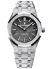 37 mm hammered 18K white gold case, 9.8 mm thick, sapphire crystal back, screw-locked crown, black dial with Grande Tapisserie pattern, white gold applied hour-markers and Royal Oak hands with luminescent coating, Manufacture Calibre 3120 selfwinding movement with hours, minutes, centre seconds and date, approximately 60 hours of power reserve, hammered 18K white gold bracelet, AP folding buckle. Water resistant to 50 m.