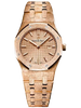 33 mm hammered 18K pink gold case, 7 mm thick, pink gold-toned dial with Grande Tapisserie pattern, pink gold applied hour-markers and Royal Oak hands with luminescent coating, Calibre 2713 movement with hours, minutes, date, hammered 18K pink gold bracelet, AP folding buckle. Water resistant to 50 m.