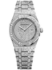 33 mm diamond-set 18K white gold case, 7 mm thick, glareproofed sapphire crystal, diamond-set 18K white gold dial with white gold Royal Oak hands with luminescent coating, Calibre 2713 quartz movement with hours, minutes, date, diamond-set 18K white gold bracelet, AP folding buckle. Water resistant to 50 meters.
