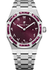 Purple dial with “Grande Tapisserie” pattern, white gold applied eastern Arabic numeral hour-markers and Royal Oak hands with luminescent coating. |