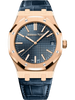 Blue alligator strap with 18-carat pink gold AP folding clasp. |