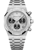 Grey dial with “Grande Tapisserie” pattern, black counters, white gold applied hour-markers and Royal Oak hands with luminescent coating.