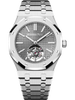 This 41 mm stainless steel Royal Oak Selfwinding Flying Tourbillon offers a contemporary monochromatic look with its Grande Tapisserie in a grey hue.