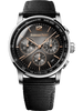 The grey and black hues of the chronograph’s sunburst lacquered dial provide depth and elegance to the case’s subtle interweaving of 18-carat white and pink gold.