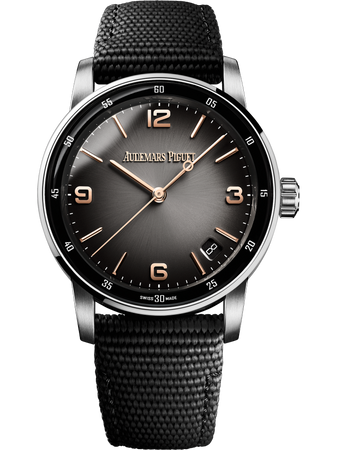 CODE 11.59 BY AUDEMARS PIGUET SELFWINDING Ref. 15210CR.OO.A002KB.01 The grey and black hues of the sunburst lacquered dial provide depth and elegance, while furthering the case’s subtle interweaving of 18-carat white...