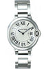Medium size (36.6mm) stainless steel case, guilloché silvered dial with Roman numerals, quartz Cartier calibre 690 movement, stainless steel bracelet. Water resistant to 30 meters.