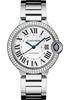36mm 18K white gold case set with 123 brilliant-cut diamonds totalling 1.21 carats, 12.1mm thick, fluted crown set with a sapphire cabochon, sapphire crystal, silvered guilloché lacquered opaline dial with blued-steel sword-shaped hands, self-winding movement, 18K rhodium-finish white gold bracelet with wrist size 180mm. Water resistant to 30 meters.