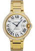 Large size (42.1mm) 18K yellow gold case, diamond bezel, guilloché and lacquered dial with Roman numerals and date at 3 o'clock, automatic winding Cartier calibre 049 movement, 18K yellow gold bracelet. Water resistant to 30 meters.