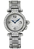32mm 18K white gold case and bezel set with diamonds, silver sunray dial, quartz movement. Comes with interchangeable18K gold bracelet set with diamonds and alligator strap with 18K gold deployant buckle. Water resistant to 30 meters (100 feet).