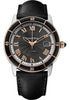 42mm stainless steel case, 9.7mm thick, 18K pink gold fluted crown set with a black synthetic spinel cabochon, pink gold-plated steel bezel with ADLC coating, sapphire crystal, gray dial with pink gold-coloured Roman numerals and pink gold-coloured sword-shaped hands, caliber 1847 MC self-winding movement with calendar aperture at 3 o'clock, black calfskin strap, double adjustable folding buckle. Water resistant to 100 meters.