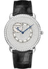Extra large size (42mm) 18K white gold case set with round diamonds, circular-grained crown with set with a diamond, round diamond paved rhodiumized 18K white gold dial with 10 black Arabic numerals and small seconds at 10 o'clock, manual winding caliber 9754 MC movement, alligator strap with rhodiumized 18K white gold deployant buckle. Water resistant to 30 meters.