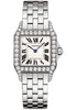 Medium size, 18K white gold case set with diamonds, silver dial, quartz movement, 18K gold bracelet. Water resistant to 30 meters (100 feet).