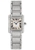 Small size, 18K white gold case set with diamonds on the sides, silver dial, quartz movement, 18K white gold bracelet set with diamonds. Water resistant to 30 meters (100 feet).