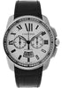 42 mm by 12.6 mm thick stainless steel case, heptagonal crown set with a sapphire, stainless steel bezel with rail track, sapphire crystal, silver dial with partly snailed opaline, silver finish chamfers and luminescent sword shaped black oxidized steel hands, caliber 1904-CH MC automatic movement with chronograph and calendar aperture at 6 o'clock, black alligator strap, stainless steel buckle double deployant. Water resistant to 30 meters.