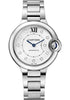 33mm steel case set with 11 brilliant-cut diamonds, 9.96mm thick, sapphire back, fluted crown set with a synthetic spinel cabochon, steel bezel set with 11 brilliant-cut diamonds, sapphire crystal, silver dial with sunray finish and lacquer, caliber 076 automatic movement with blued steel sword-shaped hands, steel bracelet. Water resistant to 30 metres.