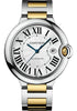 42.1mm stainless steel case, 13mm thick, fluted 18K yellow gold crown set with a synthetic spinel cabochon, sapphire crystal, silvered guilloché opaline dial with Roman numerals, blued-steel sword-shaped hands, and date at 3 o'clock, self-winding movement, 18K yellow gold and steel bracelet. Water resistant to 30 meters.