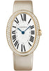 Large (44mm x 34.07mm) 18K pink gold case set with round diamonds, transparent back, silvered flinqué dial, manual winding caliber 430 MC movement, fabric strap with 18K gold ardillon buckle. Water resistant to 30 meters.