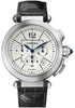 42 mm stainless steel case, transparent back, silver opaline dial, automatic winding calibre 8100-MC movement with chronograph function, alligator strap with deployant buckle. Water resistant to 30 meters.