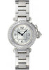 27mm 18K white gold case, diamond set crown protector, silvered dial with sunray finish and Arabic numerals, quartz Cartier caliber 157 movement, 18K white gold bracelet. Water resistant to 30 meters.