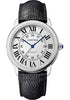 42mm stainless steel case, 8.63mm thick, beaded crown set with a synthetic spinel, sapphire crystal, silvered opaline dial with blued-steel sword-shaped hands, self-winding movement, black grained calfskin strap, steel double adjustable folding buckle. Water resistant to 30 meters.