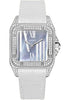 Medium size, 18K white gold case set with diamonds, dark grey mother of pearl dial, automatic winding Cartier calibre 076 movement, alligator strap with 18K gold double deployant buckle. Water resistant to 100 meters.
