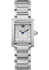 25.35mm x 20.25mm steel case, 6mm thick, steel back, octagonal crown set with a synthetic cabochon-shaped spinel, steel bezel, sapphire crystal, silver dial set with 11 brilliant-cut diamonds, caliber 057 quartz movement with sword-shaped hands in blued steel, steel bracelet. Water resistant to 30 meters.