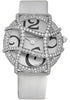 Cartier Libre Ronde Folle Watch 18K white gold case set with diamonds, white dial, quartz movement, black satin strap.