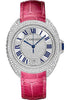 40mm 18K white gold case set with brilliant-cut diamonds, 11.76mm thick, sapphire back, 18K white gold bezel set with brilliant-cut diamonds, silver dial, caliber 1847 MC self-winding movement with blued-steel sword-shaped hands, fuchsia pink alligator skin strap, double adjustable folding buckle. Water resistant to 3 bar.