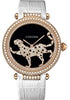 Cartier Promenade D'une Panthere Watch 42.75mm 18K pink gold case set with 400 diamonds, 11.40mm thick, sapphire back, pearled crown with a cut diamond, sapphire crystal, dark purple mother of pearl dial with panther oscillating mass complication in 18K pink gold set with 208 brilliant-cut diamonds. Spots in black lacquer., caliber 9603 MC automatic movement, approximately 48 hours of power reserve, white alligator strap, double folding buckle with 18K pink gold set with 208 brilliant cut diamonds. Water resistant to 30 meters.