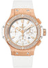 Hublot Big Bang Porto Cervo Evolution Watch 44mm 18K red gold case, 18K red gold bezel set with 114 diamonds (1.78 ct), white composite resin lateral inserts and bezel lugs, white dial, self winding HUB 4100 movement with chronograph function, approximately 42 hours of power reserve, white rubber strap with deployant buckle. Water resistant to 100 meters.