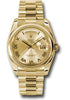 36mm 18K yellow gold case, domed bezel, champagne dial, Roman numerals, and President bracelet.
