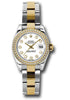 26mm stainless steel case, 18K yellow gold bezel set with 46 diamonds, white dial, diamond hour markers, and stainless steel and 18K yellow gold Oyster bracelet.
