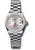 28mm platinum case, screw-down crown with twinlock double waterproofness system, domed bezel set with 44 diamonds, scratch-resistant sapphire crystal with cyclops lens over the date and double anti-reflective coating, silver...