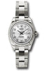 26mm 18K white gold case, fluted bezel, silver Jubilee dial, diamond hour markers, and Oyster bracelet.