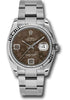 36mm stainless steel case, screw-down crown, 18K white gold fluted bezel, scratch-resistant sapphire crystal with cyclops lens over the date, bronze floral dial, Arabic 6 and 9 applied numerals, Rolex calibre 3135 automatic movement, stainless steel Oyster bracelet with three-piece links, folding Oysterclasp buckle with Easylink 5mm comfort extension link. Waterproof to 100 meters.
