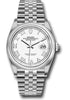 Rolex Steel Datejust 36 Watch Domed Bezel Jubilee Bracelet 2019 Release 36mm Oystersteel case, screw-down steel back, screw-down crown with twinlock double waterproofness system, domed bezel, scratch-resistant sapphire crystal with cyclops lens over the date, white dial, Roman numerals, Rolex calibre 3235 perpetual self-winding movement with center hour, minute and seconds hands, instantaneous date at 3 o'clock with rapid setting, and stop-seconds for precise time setting, approximately 70 hours of power reserve, Jubilee bracelet with five-piece links, folding Oysterclasp buckle with Easylink 5mm comfort extension link. Waterproof to 100 meters. Baselworld 2019 release.