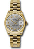 31mm 18K yellow gold case, domed bezel, gray dial, Roman numerals, and President bracelet.