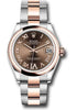 31mm Everose Rolesor case comprised of Oystersteel and 18K Everose gold, screw-down back, screw-down crown with twinlock double waterproofness system, 18K Everose gold domed bezel, scratch-resistant sapphire crystal with cyclops lens over the date, chocolate dial, Roman numerals with diamond set 6, Rolex calibre 2236 perpetual self-winding movement with date at 3 o'clock, approximately 55 hours of power reserve, Eversose Rolesor Oyster bracelet made from a combination of steel and 18K everose gold with flat three-piece links, folding Oysterclasp buckle with Easylink 5mm comfort extension link. Waterproof to 100 meters. Baselworld 2019 release.