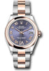 31mm Everose Rolesor case comprised of Oystersteel and 18K Everose gold, screw-down back, screw-down crown with twinlock double waterproofness system, 18K Everose gold domed bezel, scratch-resistant sapphire crystal with cyclops lens over the date, aubergine dial, Roman numerals with diamond set 6, Rolex calibre 2236 perpetual self-winding movement with date at 3 o'clock, approximately 55 hours of power reserve, Eversose Rolesor Oyster bracelet made from a combination of steel and 18K everose gold with flat three-piece links, folding Oysterclasp buckle with Easylink 5mm comfort extension link. Waterproof to 100 meters. Baselworld 2019 release.