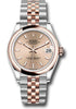 31mm Everose Rolesor case comprised of Oystersteel and 18K Everose gold, screw-down back, screw-down crown with twinlock double waterproofness system, 18K Everose gold domed bezel, scratch-resistant sapphire crystal with cyclops lens over the date, ros dial, index hour markers, Rolex calibre 2236 perpetual self-winding movement with date at 3 o'clock, approximately 55 hours of power reserve, Everose Rolesor Jubilee bracelet with semi-circular three-piece links, concealed folding Crownclasp buckle. Waterproof to 100 meters. Baselworld 2019 release.
