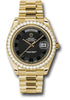 Rolex Oyster Perpetual Day-Date II President 218348 bkcap The Rolex President. 41mm 18K yellow gold case, bezel set with 42 diamonds, black concentric circle dial, black Arabic numerals, and President bracelet.