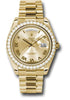 Rolex Oyster Perpetual Day-Date II President 218348 chrp The Rolex President. 41mm 18K yellow gold case, bezel set with 42 diamonds, champagne dial, Roman numerals, and President bracelet