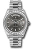 DESCRIPTION: Rolex Oyster Perpetual Day-Date 40 Watch 228396TBR drsmip 40mm 950 platinum case, screw-down back with Rolex fluting, screw-down crown with twinlock double waterproofness system, bezel set with 40 baguette-cut diamonds, scratch-resistant double anti-reflective sapphire crystal with cyclops lens over the date, dark rhodium dial, index hour markers with Chromalight, Rolex calibre 3255 automatic movement with centre hour, minute and seconds hands, instantaneous day and date in apertures, unrestricted rapid-setting, and stop-seconds for precise time setting, approximately 70 hours of power reserve, President bracelet with three-piece solid links comprised of a polished center link, satin-finished outer links, and ceramic inserts, concealed folding Crownclasp buckle. Waterproof to 100 meters.