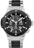 Hublot Big Bang Aero Bang Watch 44mm stainless steel case, black ceramic bezel, black composite resin lateral inserts and bezel lugs, black dial, self winding HUB 4124 movement with skeleton chronograph function, approximately 42 hours of power reserve, stainless steel and ceramic bracelet. Water resistant to 100 meters.