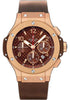 Hublot Big Bang Cappuccino Watch 44mm 18k red gold case, 18K red gold bezel, brown carbon blasted dial, self winding HUB 44 movement with chronograph function, approximately 42 hours of power reserve, brown rubber strap with deployant buckle. Water resistant to 100 meters.
