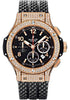 Hublot Big Bang Evolution Watch 44mm 18k red gold set with 212 diamonds case set with 212 diamonds, 18K red gold bezel set with 114 diamonds, black dial, self winding HUB 44 movement with chronograph function, approximately 42 hours of power reserve, black rubber strap with deployant buckle. Water resistant to 100 meters.