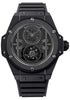 Hublot Big Bang King Power All Black Tourbillon Watch 48mm black ceramic case, black ceramic and black rubber bezel, black dial, manual winding HUB 6002 tourbillon movement with off-center hour and minute indicators at 12 o'clock and seconds via the tourbillon cage at 6 o'clock, approximately 120 hours of power reserve, black rubber strap with deployant buckle. Water resistant to 100 meters.