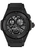 Hublot Big Bang King Power Chrono Tourbillon All Black Watch 48mm microblasted black ceramic case, microblasted black ceramic bezel, multi piece sapphire dial, manual winding HUB 1400CD movement with tourbillon chronograph, approximately 120 hours of power reserve, jointed black rubber strap with deployant buckle. Water resistant to 100 meters.