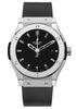 45mm zirconium case, zirconium bezel, black dial, self winding HUB 1112 movement, black rubber strap with deployant buckle. Water resistant to 100 meters